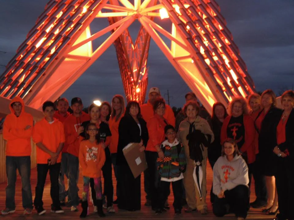 The SkyDance Bridge in Oklahoma City lit orange during Color The World Orange™ 2014